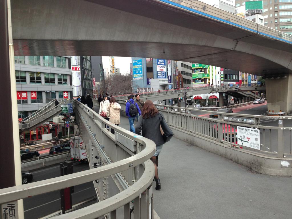 登り切ると歩道橋が左右二手に別れていますが、ここは左を選びます。